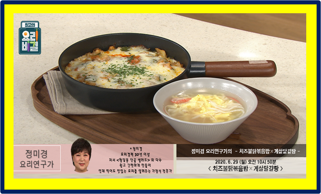 | ebs최요비레시피 정미경 치즈불닭볶음밥 (0) | 2020.06.28 |